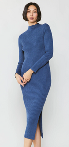 walked in looking stunning in her cobalt body con sweater dress and shearling boots. Still